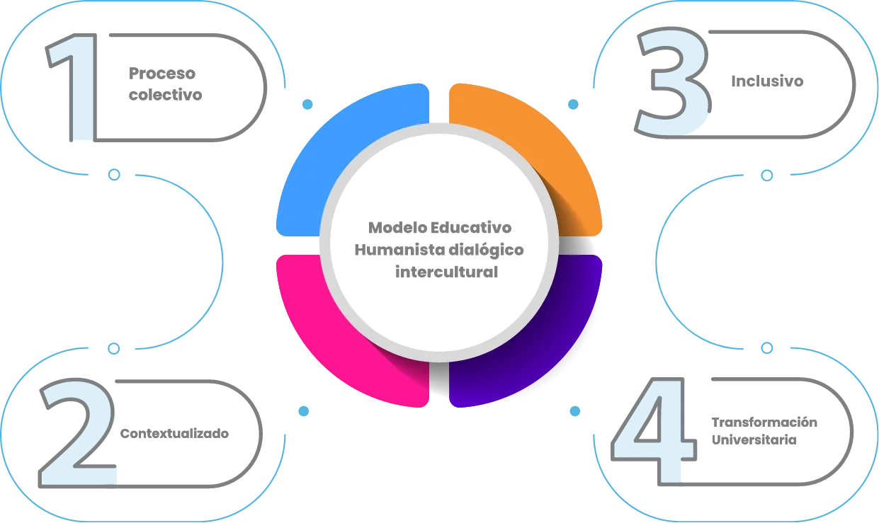 Este modelo coloca en el centro a las personas y a la diversidad cultural de Chiapas, integrando el humanismo dialógico y la interculturalidad como principios rectores. Su objetivo es formar profesionales críticos, éticos y comprometidos con la justicia social, el cuidado de la tierra y la construcción de un futuro sustentable.